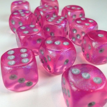 Dice Set Borealis 16mm Pink-Silv D6 (12)